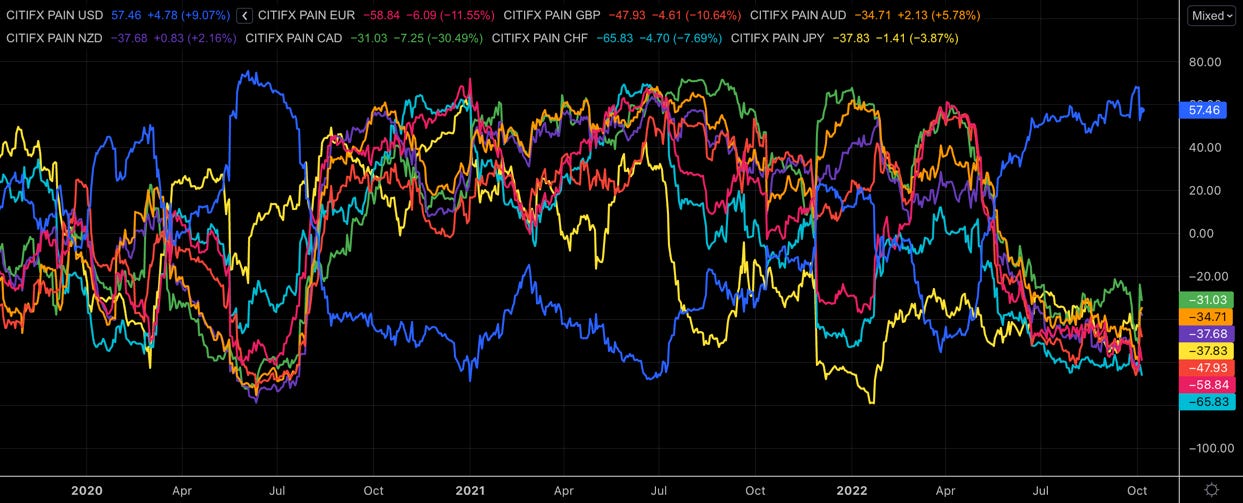 CitiFX PAIN: the dollar long has taken a bit of a hit over the last few days. The currencies that have seen the most action were CAD, AUD and NZD. The shorts in EUR, CHF and GBP haven’t been affected as much: